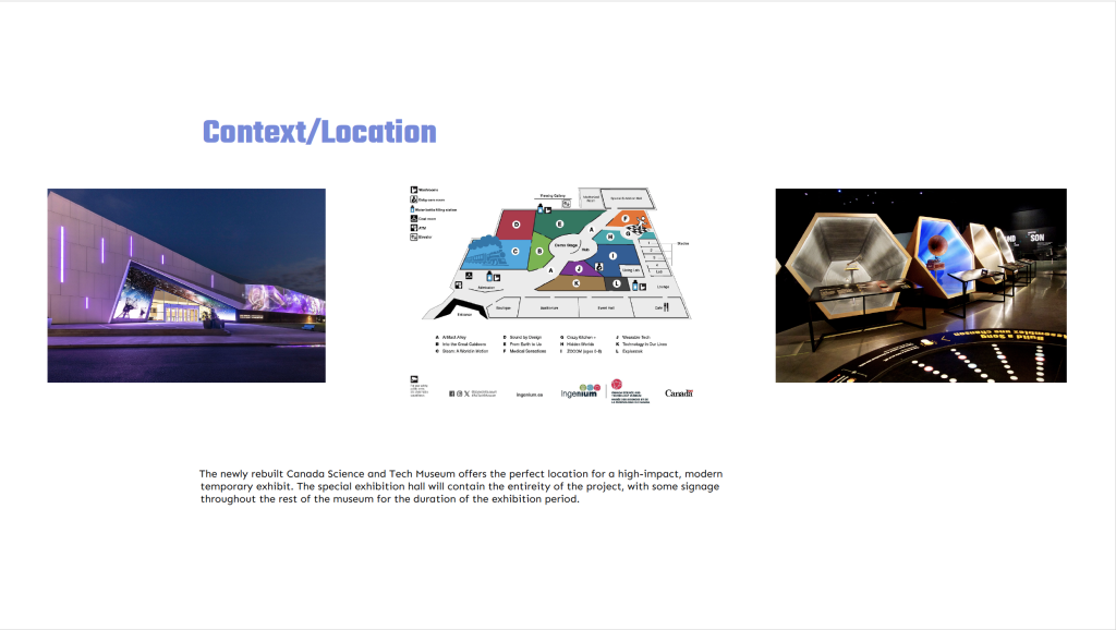 After researching the new partner of the Canada Science and Tech Museum Ingenium, and the proposed exhibit location, I gathered all the necessary context in one place.
